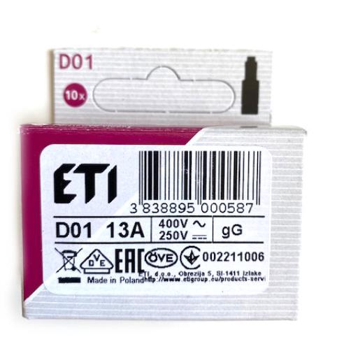 10 Stück Schmelzsicherungen D01 gG 13A/400V zum Kabelschutz geeignet