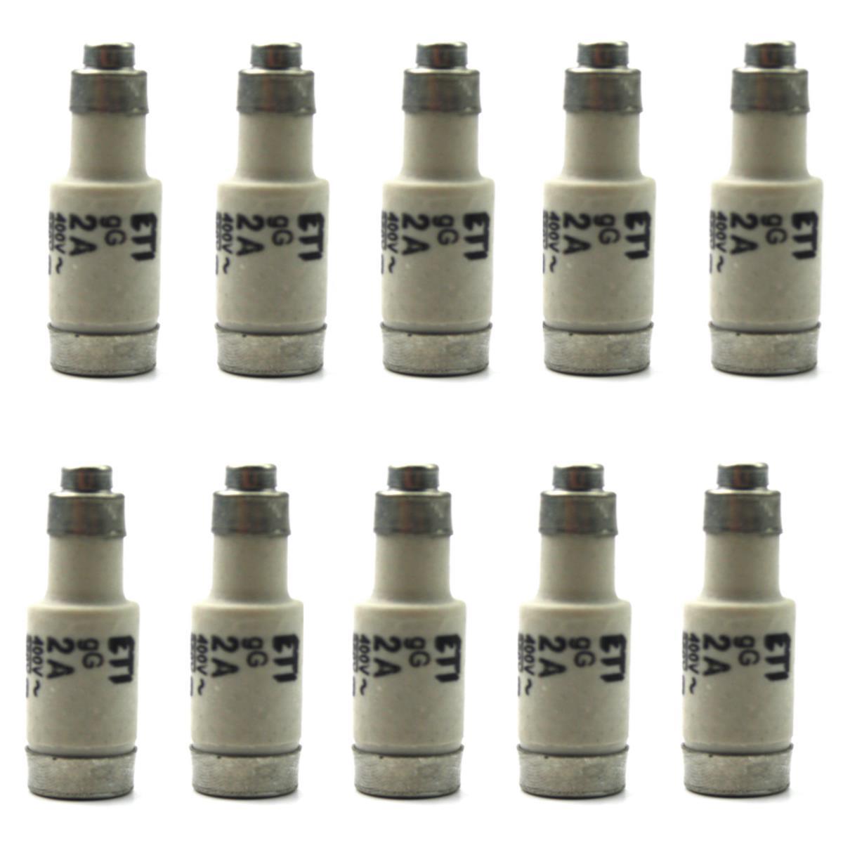 10 Stück Schmelzsicherungen D01 gG 2A/400V zum Kabelschutz geeignet