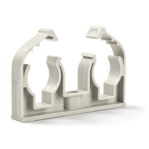 doppelter Rohrclips für einfache Montage von Leitungs- und Kabelsystemen an Decke, Wand oder Boden.