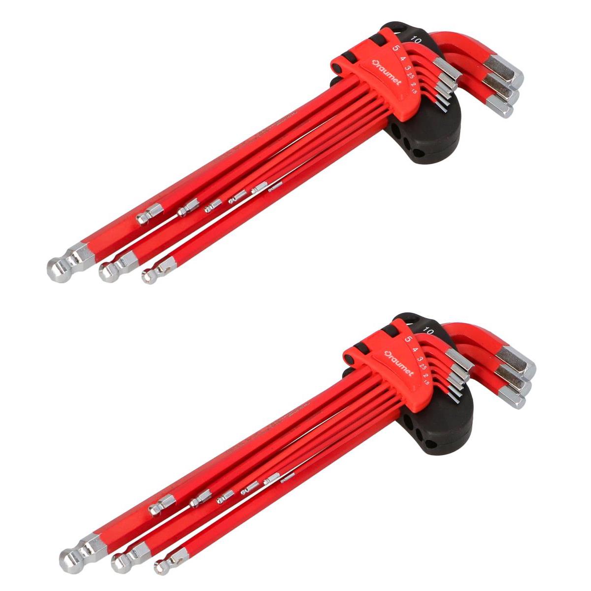 2 x Profi Sechskantschlüssel Set lang 9 tlg Kugelkopf 1,5 - 10 mm Winkelschlüssel