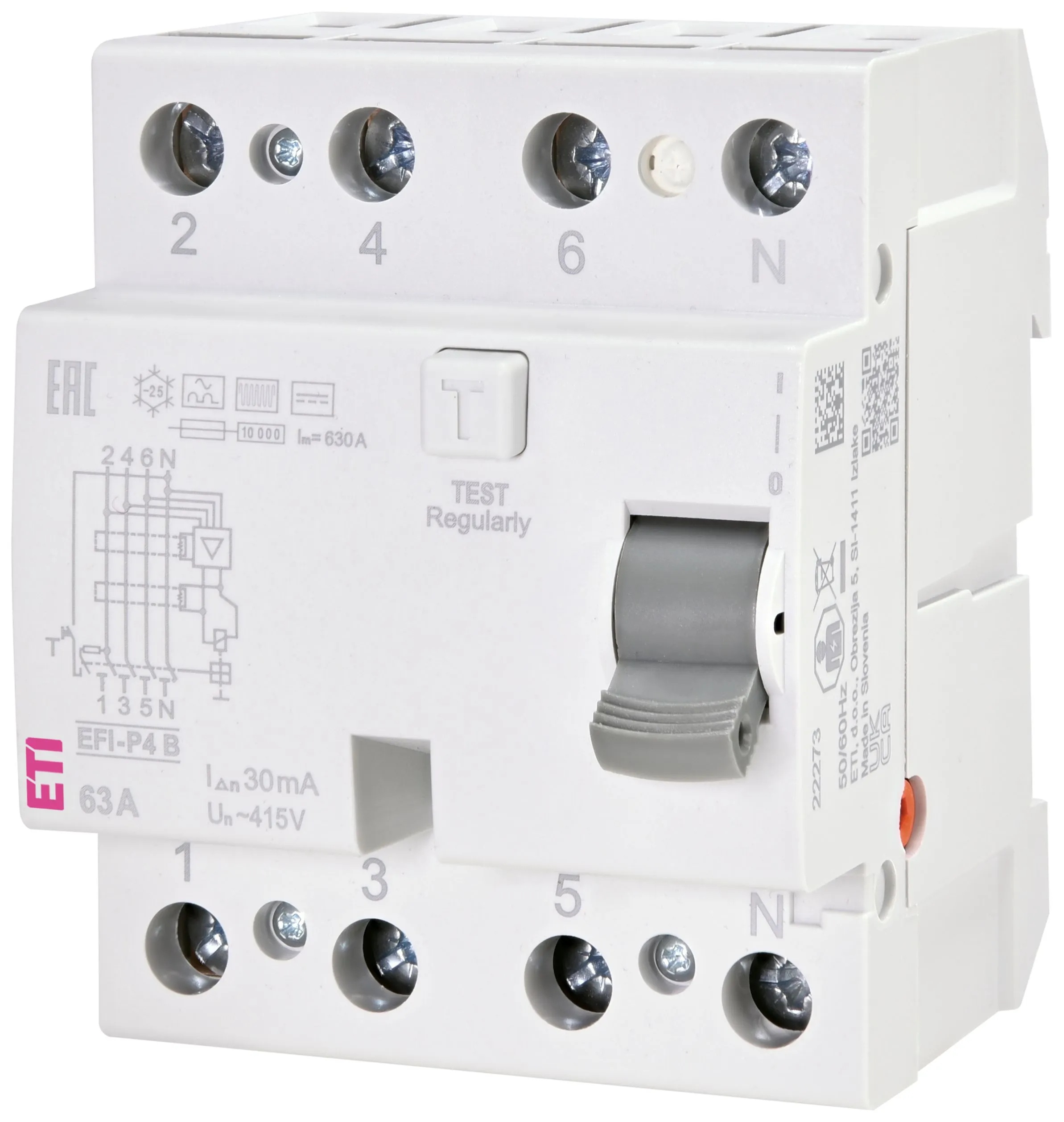 ETI Fehlerstromschutzschalter EFI-4 B+ 25/0.03 4-polig 25A IP20