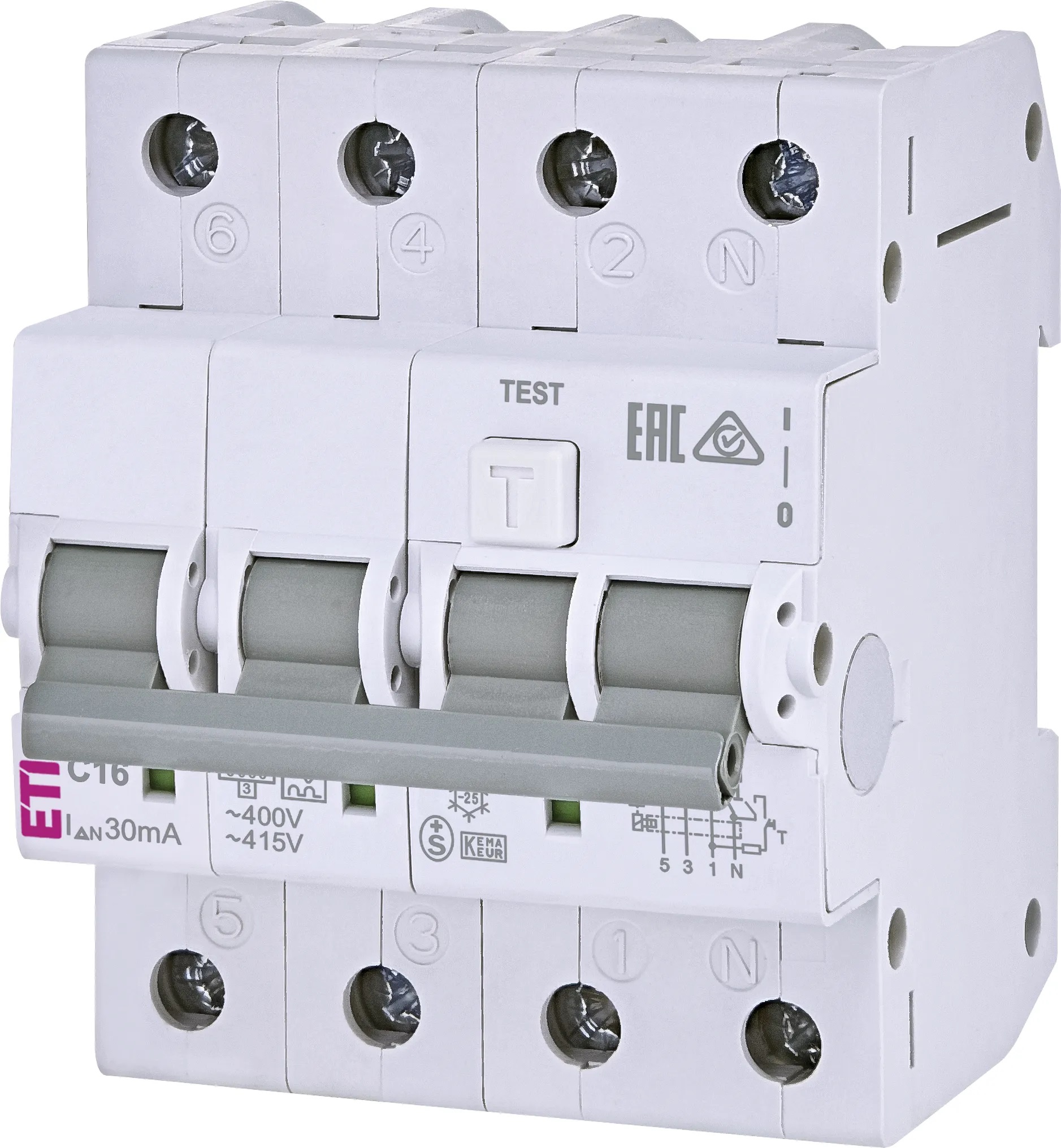 ETI Fehlerstromschutzschalter FI-LS-Schutzschalter KZS-4M 3p+N A C16/0.03
