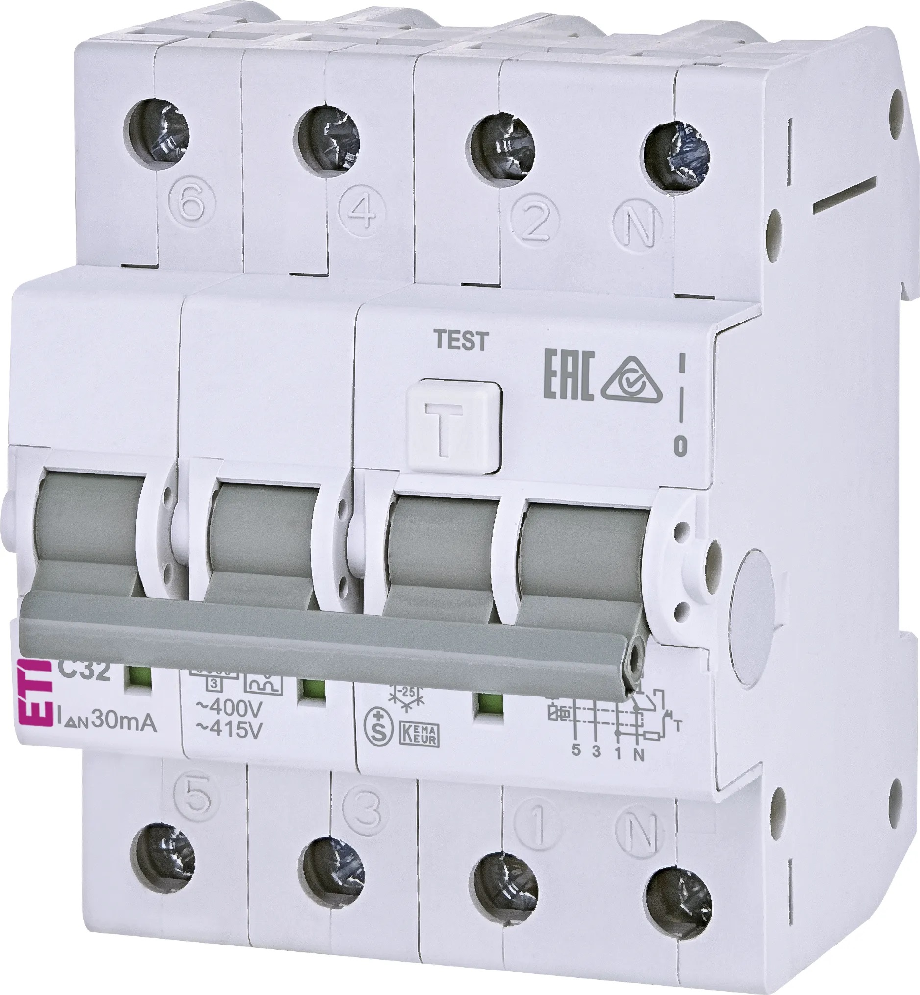 ETI Fehlerstromschutzschalter FI-LS-Schutzschalter KZS-4M 3p+N A C32/0.03